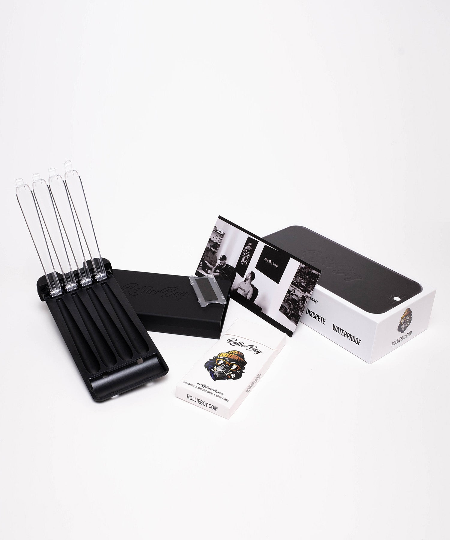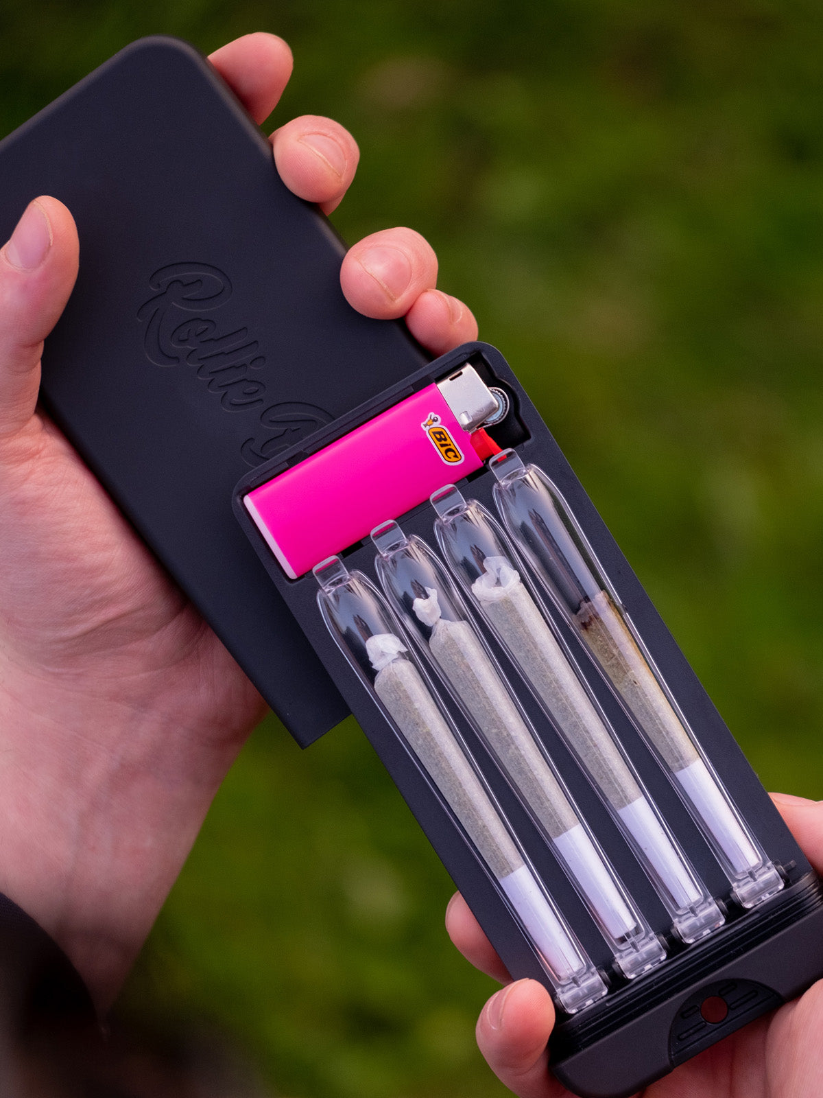 The Ultimate Travel Companion - Whether you're hiking in the forest, floating the river, or snowboarding in Aspen, Rollie Boy has got you covered. Our case is waterproof, smell-resistant, and comes with a firestarter kit for lighting your papers.